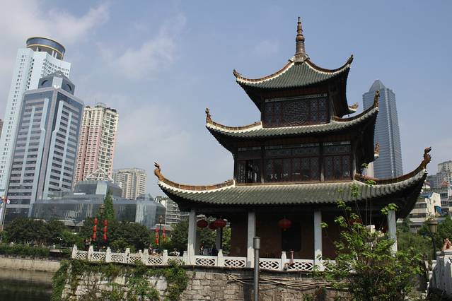 甲秀楼是免费的景点,同时也是极具历史意义的景点。楼就建在河道上,始建于明朝,后被焚毁,而现在我们看到的是清朝时期修建的,甲秀楼,顾名思意,是科甲挺秀的意思、