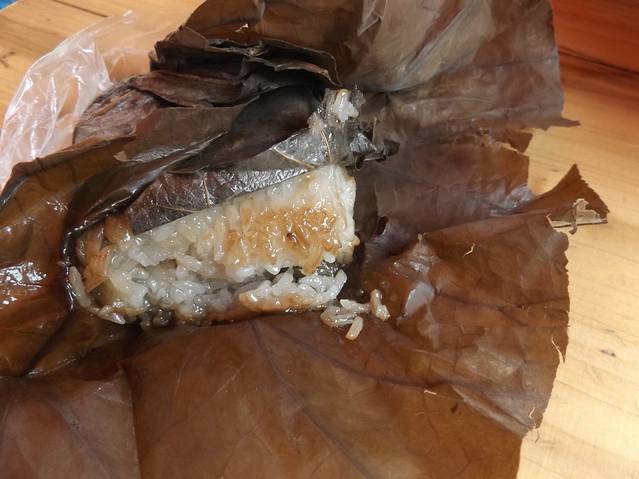 凉子学校对面的糯米鸡,有淡淡的咸味,和植物叶子的香气