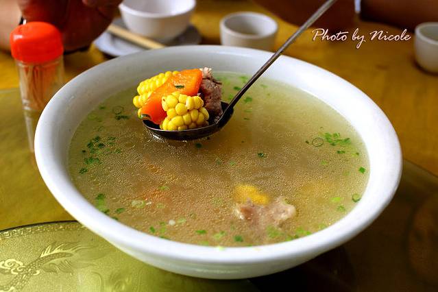 苦笋也是这里的特色,说是苦笋,其实苦味淡淡的,很败火。后面那个米汤浸青菜的做法也很独特哈,清清淡淡的反而挺受欢迎。
