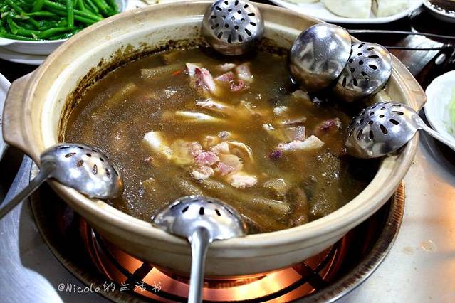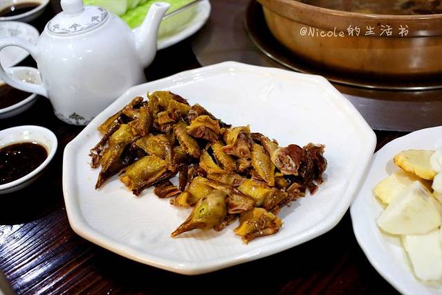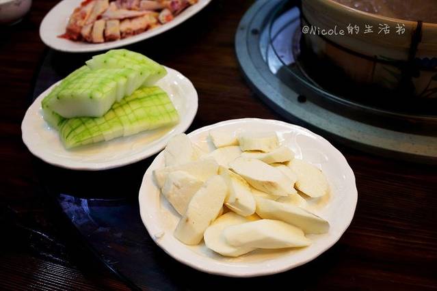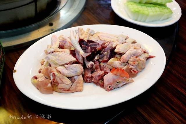 锅烧开之后,先喝一碗汤,然后就可以放入鸡肉以及其他涮料了,鲜美得很。