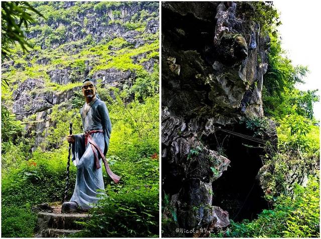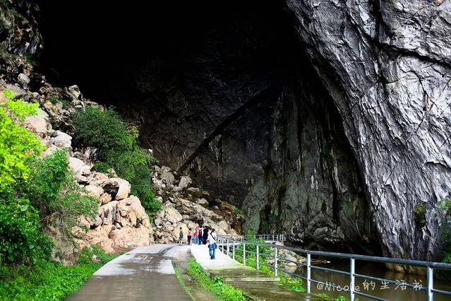 在黑暗中的摸索,让这十几分钟的路程显得尤其漫长,终于看到洞口了,洞外的那一抹清新绿色,映衬着剪影般的人像,如画一般。