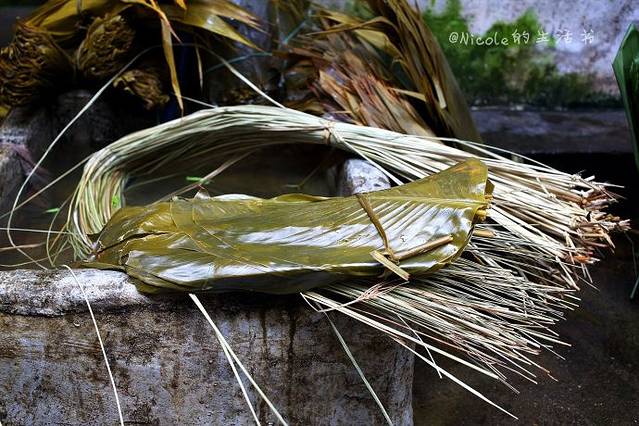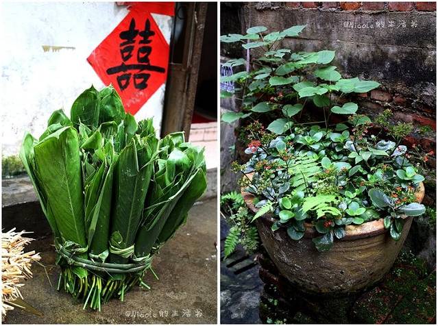 终于走到这座小屋前停住脚步,门前的一捆捆粽叶似乎预示着这就是我们要找的地方,一抬头,铁门上挂着的几个粽子让我们更加确定没有找错。
