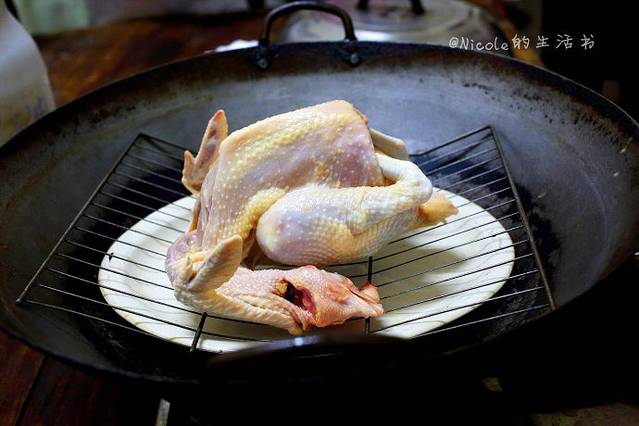 简单记录了做茶油鸡的过程:先把盐和茶籽油混合,把鸡放入充分按摩,静置片刻之后再将鸡放在架子上,锅中加少许茶籽油,鸡入锅后盖上盖子蒸90分钟。全程不再加一滴水和其他调味料,全靠茶籽油的蒸汽将鸡焖熟,精华全部浸入鸡肉中,怎能不好吃啊。因为加工时间长,全手工,所以这家一天只做4只,卖完即止,想吃鸡的话,最好提前预定,不然很可能抢不到啊。