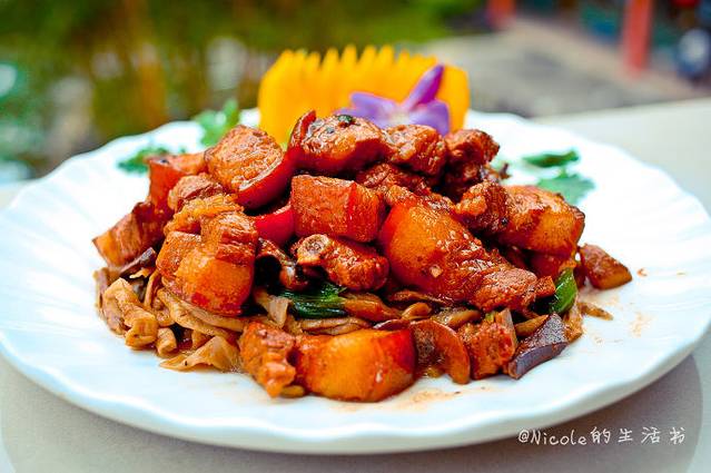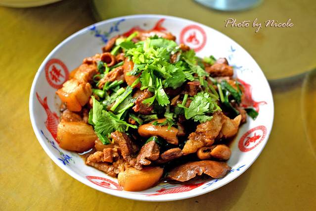 萝卜仔焖土猪肉,这个不多说了,油亮亮的,看着也知道过瘾哈。不过我更爱吃土猪肉下垫着的萝卜干,脆脆韧韧的,好吃。