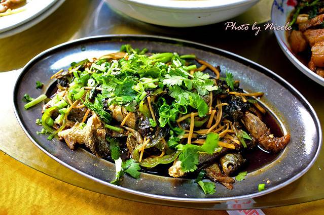 这个不知道是什么鱼,两寸长,直接连鱼骨都能吃,不过偏咸了,送白饭还不错。