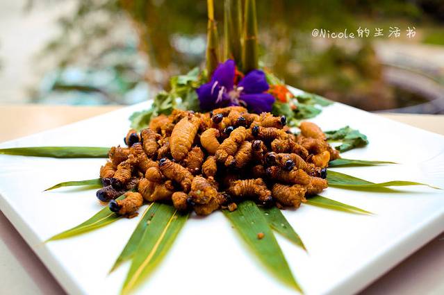 椒盐竹虫,既然竹林成片,那有竹虫也不奇怪了,炸得酥酥的,撒上椒盐,看起来非常香。不过遗憾的是对这类东西,我只敢看,没胆量吃。