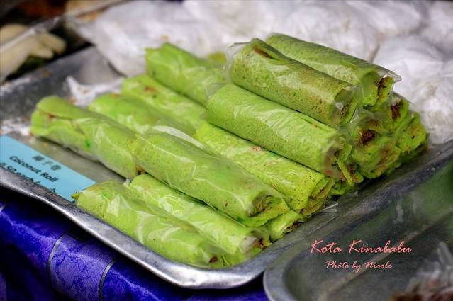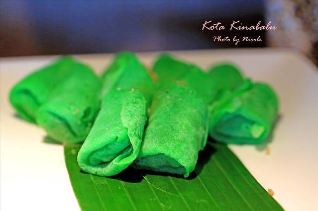 这个绿色的饼皮中由于混合了班兰汁,馅料中似乎混入了椰丝,味道很柔和,不错。