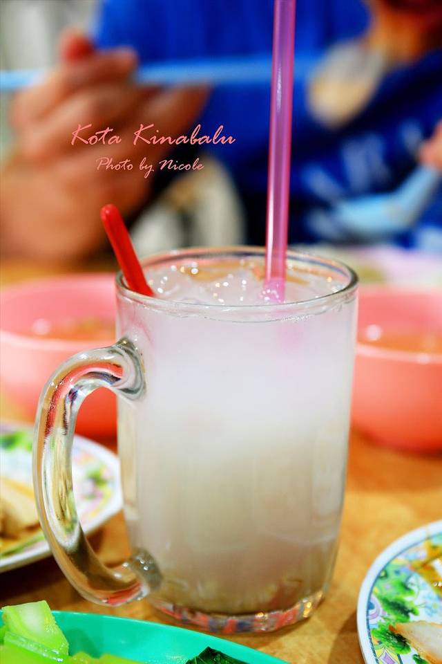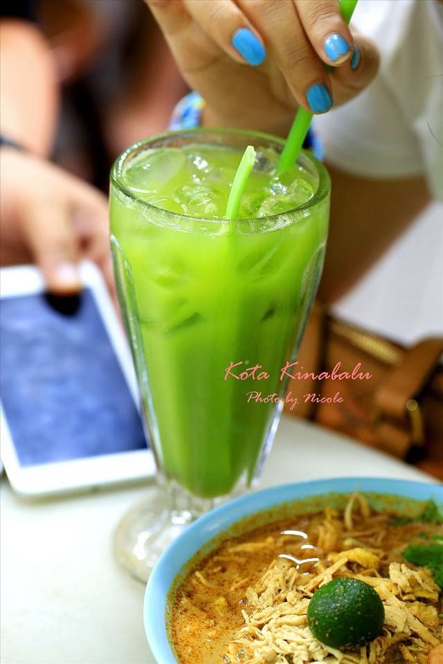 在朋友的推荐下,还点了沙梨汁,沙梨貌似也是亚庇的特色吧,沙梨汁是好纯的绿色,绿得通透,很美。