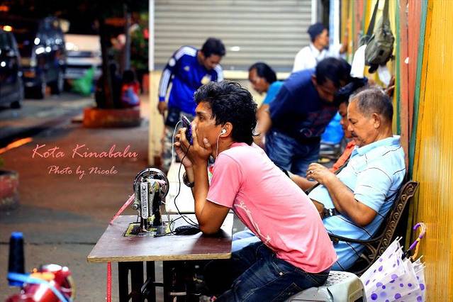 男裁缝也是亚庇街头的一道风景,他们专注而安静,似乎与夜色融成一个画面。