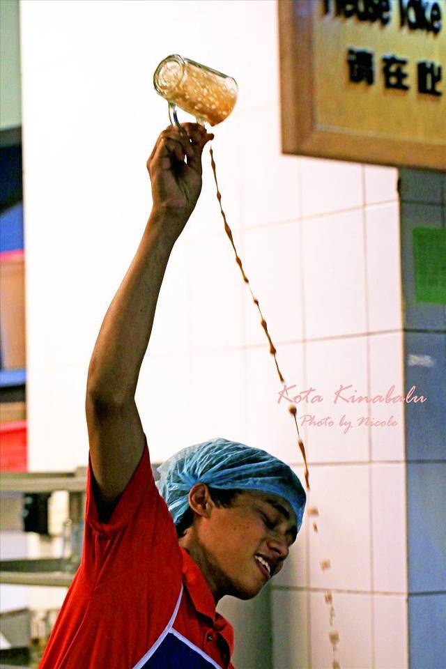 富源的拉茶超赞,专心等待了很久,终于拍到小哥娴熟的拉茶技术,拉茶,拉茶,拉起来才够霸道。刚刚出品的奶茶果然好喝,而且冰冻的比热的更好喝。