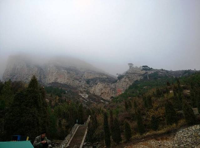 天公不作美,恒山整个隐藏在浓雾中。很简陋的登山口。