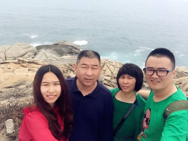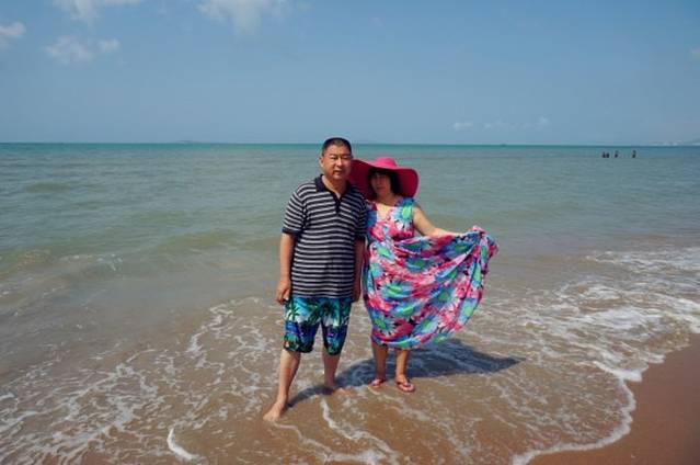 水很蓝的老爸老妈很开心,老妈照相总是不自然,我逗她笑才完成上面这张,自然吧?哈哈哈
