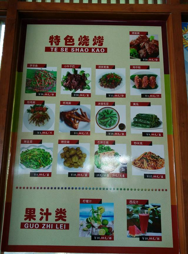 进生态园内有一大片白沙滩,沙滩上有尽情发挥创意的孩童们,沙滩的旁边有以沙滩命名的休闲驿站——沙滩茶室,茶室经营的品类可谓是琳琅满目并且价格实惠,烧烤罗非鱼30/条、 卤鸡中翅4元/支、泡鸡脚3元/支、卤鸡脚3元/支、炒米线12元/盘还有各种各样的鲜榨果汁酸酸甜甜的柠檬汁10元/杯、西瓜汁10元/杯、橙汁10元/杯另外还有果味扎啤每种果味的价格都有所不同,靠在水边的一大优势这里还有脚踏三轮船,每张船45元/小时,先吃饭等会去水上登车去。