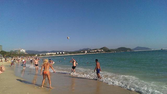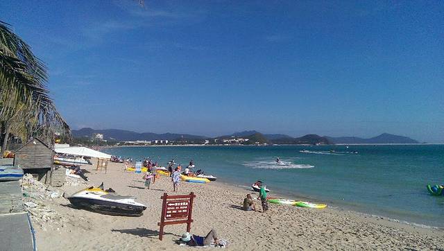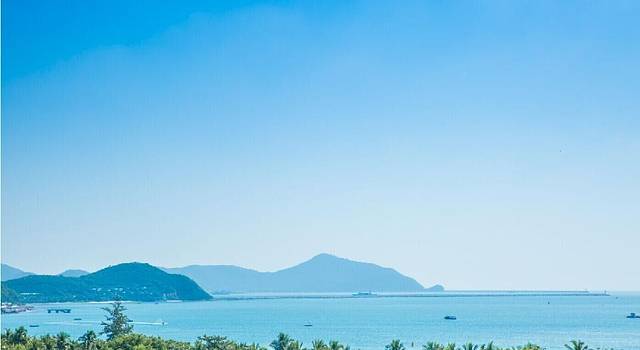 从小区出来走路不到3分钟就到了海边,非常近。大东海的海水好蓝啊。