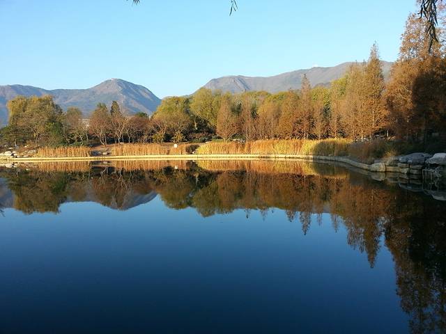 久在雾里看花或朦胧望景,大家对蓝天是那么饥渴。11月6日那天刚在植物园走了半圈,那天的天格外蓝,风也格外大,匆匆半日拍下不少美照。今天的天气又很给力,经不住银杏的诱惑再次来到植物园,没料到水杉的那份嫣红给了个意外惊喜。