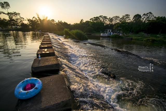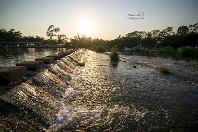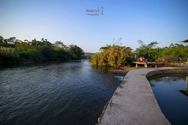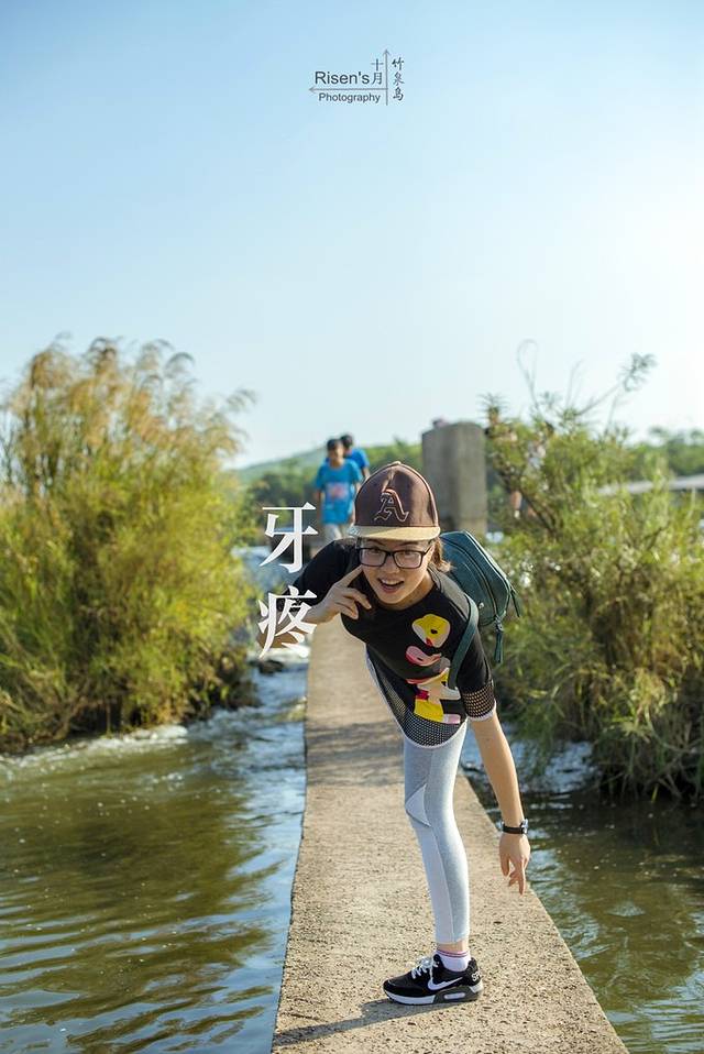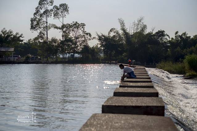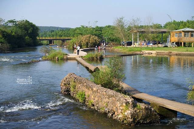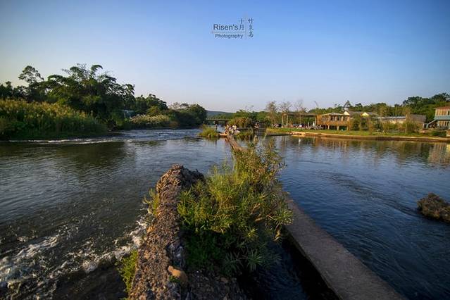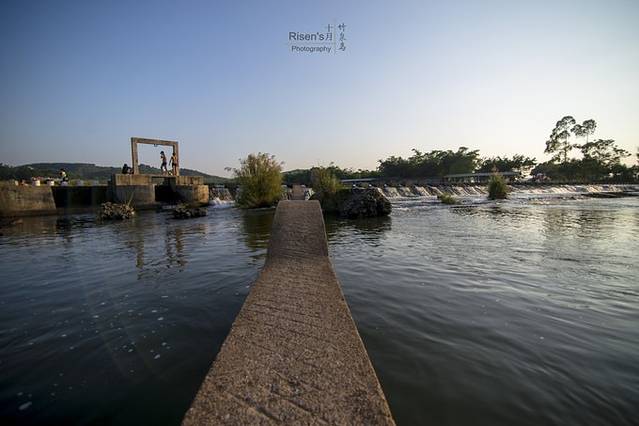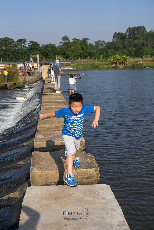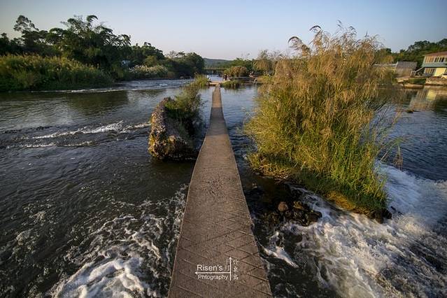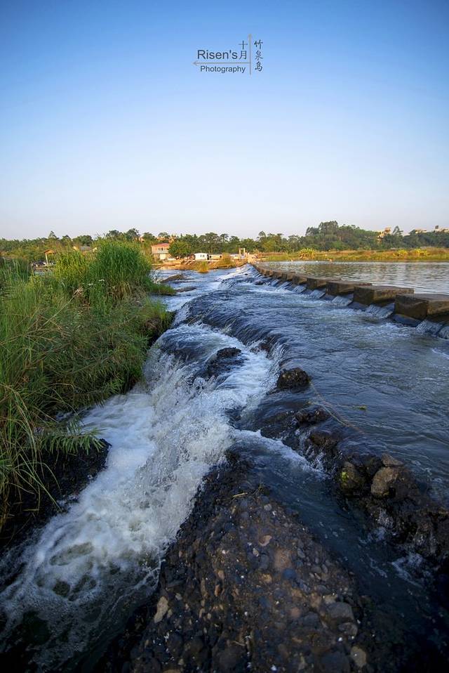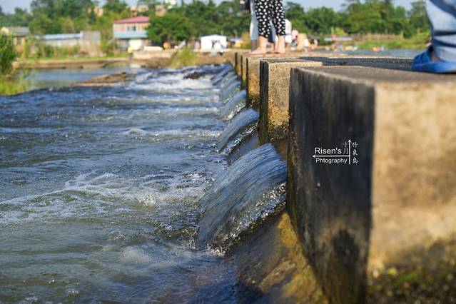 沿着小路走一会就豁然开朗,只见远处宽阔的堤坝,河水从坝上的石墩之间流出,一跳仅勉强够两人通过的小桥直通坝上。这里就是竹泉岛最美的地方,彷如世外桃源,让你忘记了纷扰,忘记了匆忙的生活,这里只有田园诗。