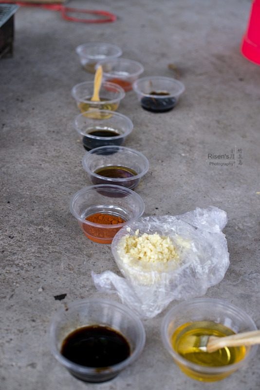 所有的配料都是本大神准备的,当然是应有尽有,烧烤汁、耗油、香油、蜂蜜、孜然粉、芝麻、辣椒粉一个不落。