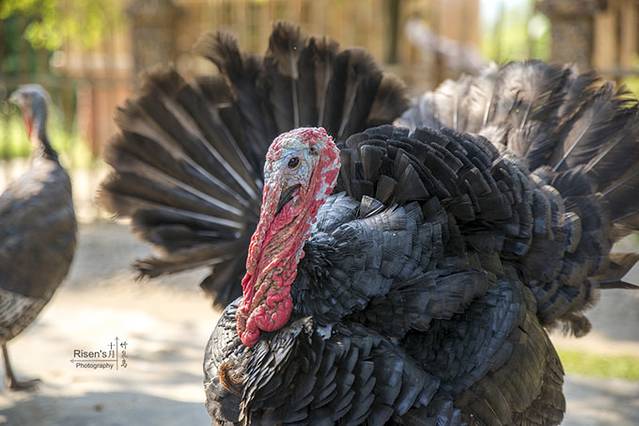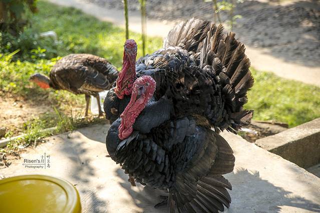 然后还偶遇到了火鸡一家,也不知道它们是从哪来的,才发现原来火鸡长这样,这颜值,真的不忍直视。