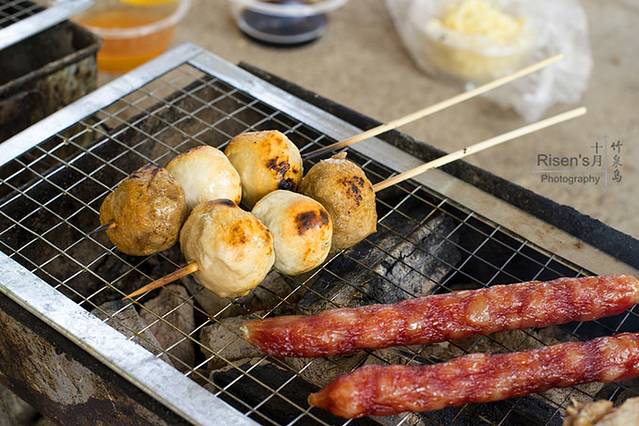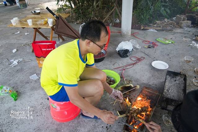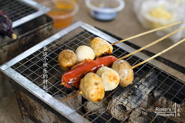 把夕阳下的竹泉岛拍了个遍之后,我就回基地了,一看,这些家伙居然还在酣战,我真是彻底投降了!旁边来这烧烤的人已经走得差不多了,现场一片狼藉,这个时候刚游泳回来的生火能手泡哥再次瞬间生火,烤起了晚餐。。。工作人员表示很无奈,他们要下班了,对我们一番交待后,他们便扬长而去。