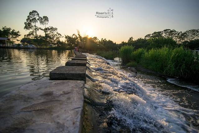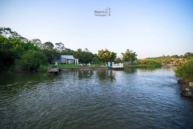 不知不觉太阳已经快沉入地平线了,在这余晖的照映,竹泉岛显得格外宁静安详,加之游人减散,更突显这宁静。河水和天空都呈现出深幽的蓝色,显得那样深邃和神秘,置身此地,觉得时间都要静止了,这应该就叫岁月静好吧。