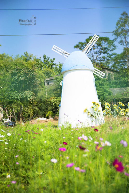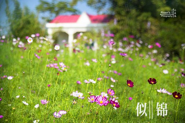 哈哈,这张照片我很喜欢,但是实际并非看到的那样。这不算是竹泉岛的景区里面的,而是一个拍婚纱照的小院子,里面有一些欧式的小灯塔和小建筑,还种了些格桑花,两个地方有尼龙网隔开,我是透过尼龙网的孔拍的,看到实景肯定会失望,不过拍出的小小一角倒是挺美的。