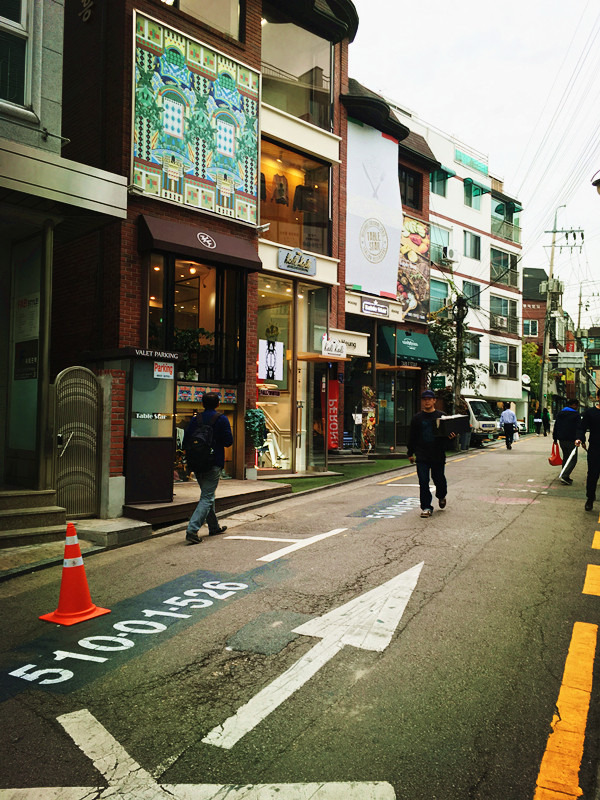 九点我们就整装待发出门了,打算从忠武路地铁站坐地铁去。走到地铁站突然发现旁边的小路直通的就是南山谷韩屋村,忍不住进去看看。