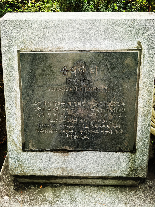 原来是挹白堂的遗址,现在就剩一个亭子了。但是都是韩文看不明白,仅有几个中文”自凝“”仁穆大妃“”废母论“”自兴“。大概能猜出是光海君时打算以废母论废除仁穆大妃的事情。后来回来查资料才知道,仁穆大妃是朝鲜宣祖的王妃。光海君非长非嫡即位,一直忌惮仁穆大妃的儿子永昌大君,后来打算以废母论废除仁穆大妃。朴承宗是光海君时的高官,官拜领议政,相当于宰相了。他有两个儿子,一个朴自兴一个朴自凝。朴自凝号挹白堂。想必就是他们居所的遗址了。