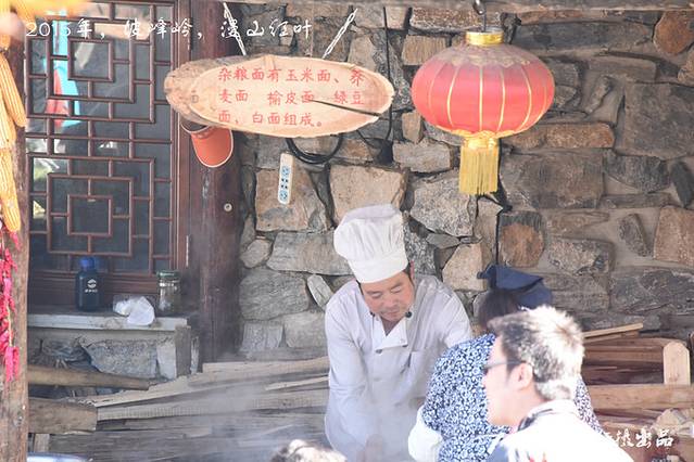 坡峰岭景区内的红色背篓餐饮部:以现场压饸饹、蒸包子为特色,餐饮部还提供快餐,菜品实惠,价格亲民,就是……人多。