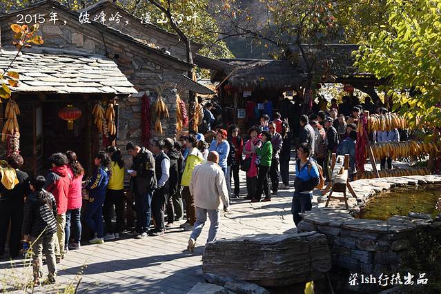 1.到11月,坡峰岭已进入最佳观赏区。周末的时候,人非常多。景区在一个沟里面,进出一条路,十点以后,出现拥堵是必然的。个人以为,8点钟之前到达景区是个不错的时间选择。中午出发应该不算错峰,因为大家……也是这么想的。