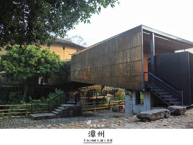 终于亲眼见到书屋的面容当时我还是很兴奋的!连接土楼之间的这座现代的作品,整个视觉效果很有冲击力,可以说是眼前一亮。