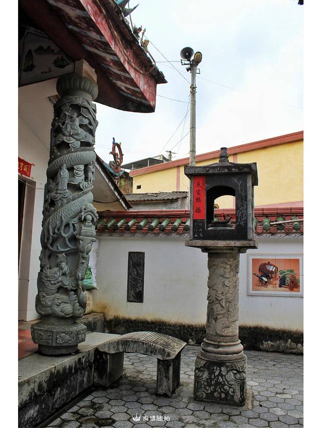 屋脊中间依旧是闽南建筑风,两只龙护着太阳。寺庙不大,只有面阔三间,进深二间。建于唐朝宣宗年间,距今已有八百四十多年历史了。