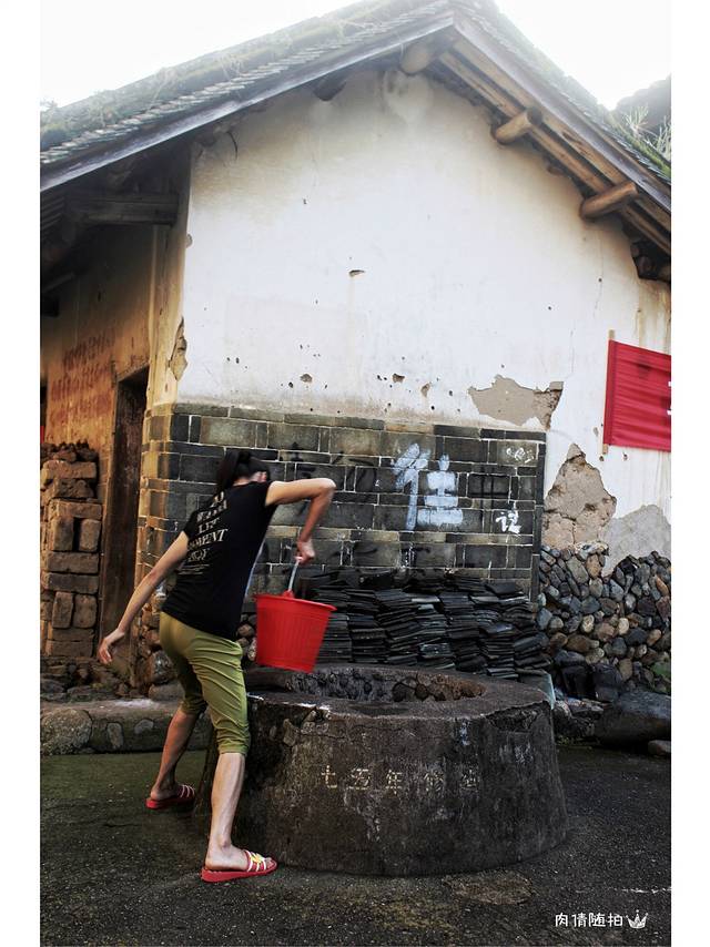 一住户在打水,可以很详细的看出井上刻着”七五年的井“,这是乱涂乱画还是?