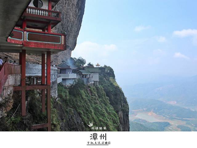 那么这个灵通寺呢是由山门、廊房、天王殿、圆通宝殿和黄道周祠及钟鼓楼的组群寺庙,而最有特点的就是它悬空而立。这个角度能大概涵盖整个寺庙。