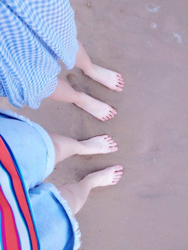 沙滩上 白花花的脚丫