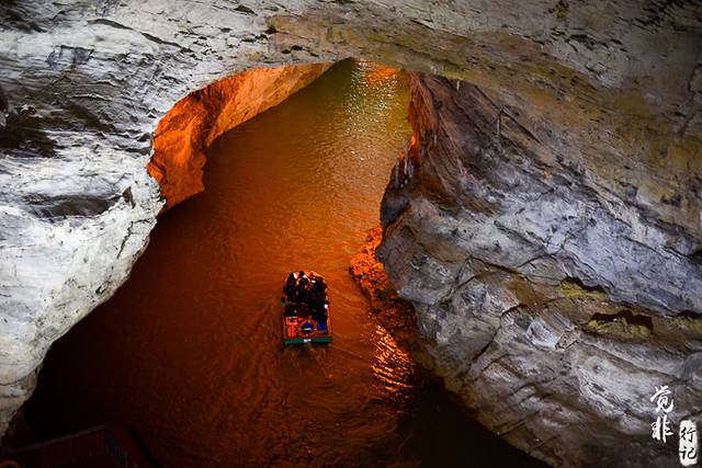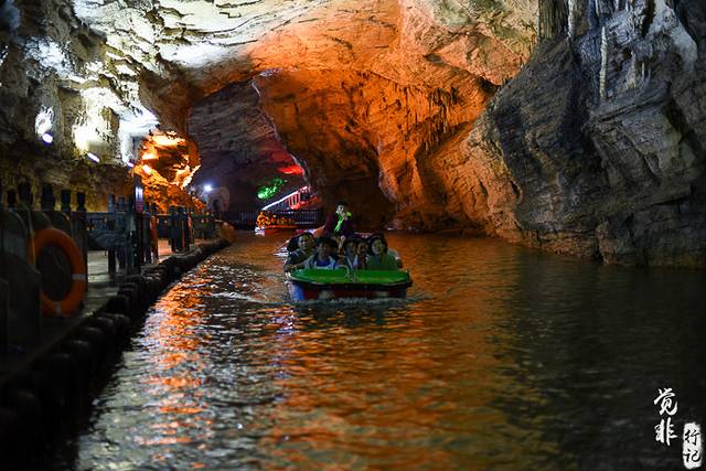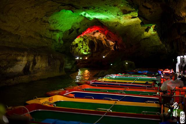 因为进洞后,里面是暗河,需要乘船游览,所以景区在洞口都安排有带队的导游,一路带着我们乘船,讲解洞里的故事。