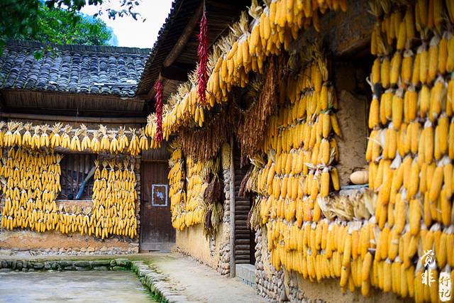 景区口环境很好,一片农田基地,还有一栋土房子,外面挂满了玉米。边上还有碾坊,用来榨油的,当然,现在的作用主要是观赏。