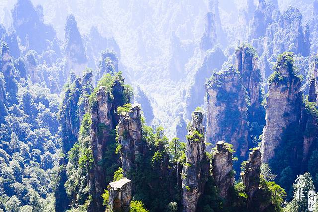 第二天,一大早,在三岔口乘车前往袁家界,说起袁家界,大家可能不熟,但是《阿凡达》里的哈利路亚山,大家应该都知道。哈利路亚山的原型就是袁家界的乾坤柱。远在《阿凡达》播出前,乾坤柱就是袁家界的核心景点,张家界旅游必到的一个地方。