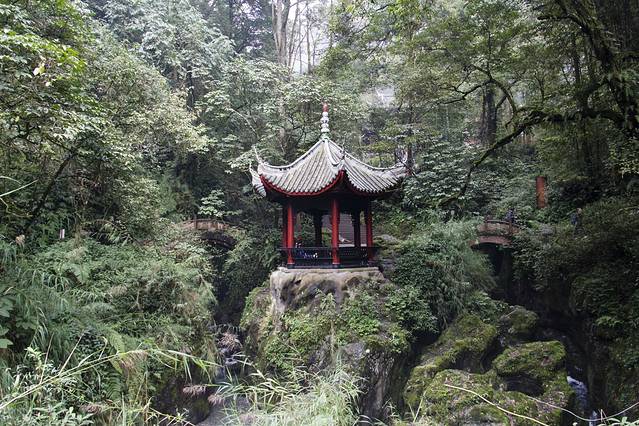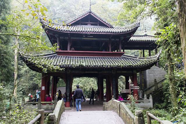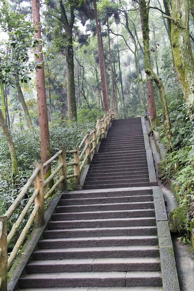 第一天路线:在黄湾售票点取票后只买了半程票坐汽车到五显岗徒步上山,清音平湖出发-——音阁——万年寺——息心所。我们在山脚吃了中午饭,出发时间已是下午2点了,原计划是坐汽车到到五显岗,徒步到走清音阁再从清音阁到万年寺停车场,然后坐车上山,晚上住宿金顶第二天看日出的。结果到万年寺时已经是下午4点,去往车场还是40分钟的路程已经赶不上最晚后班下午4点上山的车,索性就选择直接徒步上山了。从不过也不遗憾,因为从五显岗徒步到接引殿这一路风景真的很美,说三步一景毫不为过。如果体力不错的朋友,建议跟三五个好友结伴而行从五显岗徒步上山,只徒步上山才能看到峨眉无处不在的惊奇与美丽,真正体会到游峨眉的乐趣。在万年寺时候遇到一对新婚夫妇与我们结伴上山,他俩上午就从五显岗徒步走另一条路线上一线天去生态猴区看过猴子再倒回来,体力消耗非常的大。考虑到他俩体力我们放慢了上山的速度,一路上说说笑笑,到达息心所时已经下午五点,山中的夜幕相比山下要来得早些,如果我们再继续上山会很赶,山中又是云雾弥漫出于安全考虑,我们决定就在息心所留宿下来。