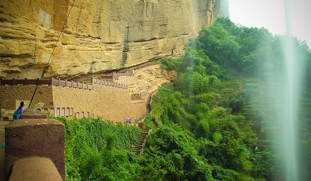 人是可以爬上石阶到洞中,环绕周围山就是洞壁了。