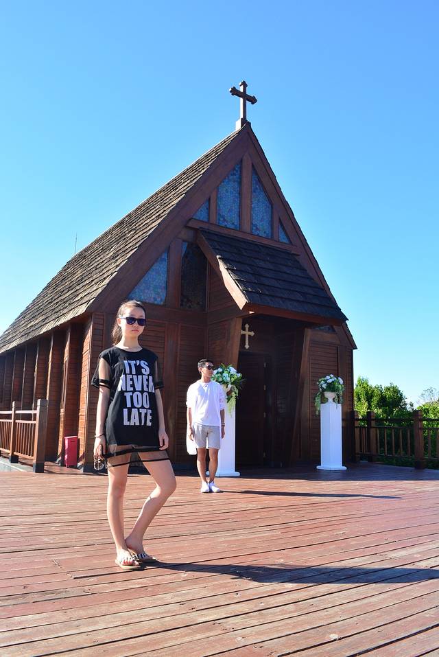 山顶教堂,有人在拍婚纱,可以订办婚礼,月底就有