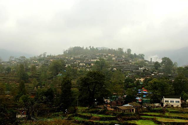 中午当太阳隐隐约约冒出一点点头的时候,幸运的我们终于能拍到瑶寨的全景,有时候旅行不也是得看那一点点运气吗?