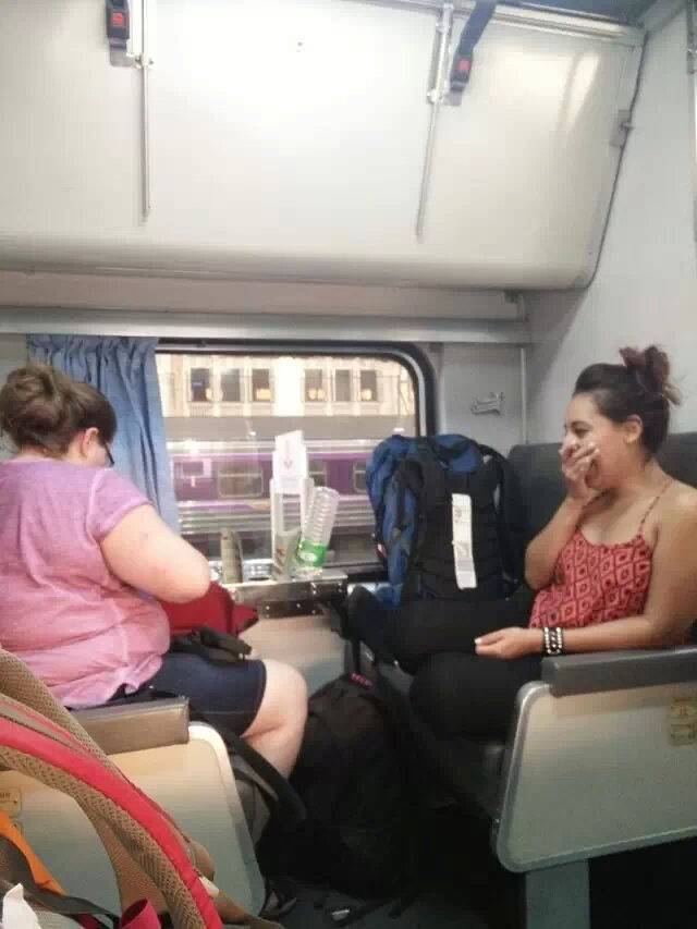 从曼谷到清迈的火车很是有趣,不像我们的卧铺就直接是卧铺,泰国的火车卧铺白天是硬座晚上才是卧铺。是可以折叠的车厢,空间很大,只是空调吹的很冷,也有窗帘和被单。相对来说还是不错的,也是比较干净。车程大概7、8个小时具体的忘记了,以当地时间为主。