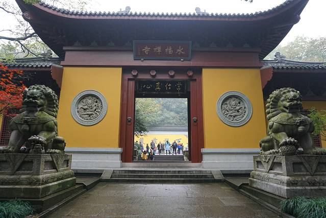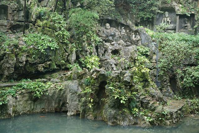 其实飞来峰景区很大,在里面也是逛了整整一天。绿色的植物,黄色的墙壁,灰色的造像和瓦片,整个画面清新。永福寺逗留的最久,然后去了韬光寺,之后做了个错误的决定,爬了北高峰。可能天气好的时候,爬上去能看到整个景区的全景吧,但是之前说了,没有一天下雨,空气湿度很大,烟雾缭绕的,以至于,我们爬了950阶台阶上去后发现,神马也看不到,而北高峰上面唯一的庙宇也还没建好,所以。。。什么都没有。对于锻炼的人来说。爬爬山也是好的。但是俺是来旅游的啊啊啊,把体力留着给别的地方该有多好,不去别的地方歇着也是极好的啊啊啊。不说了,我去哭一会。