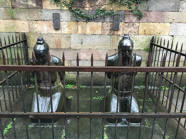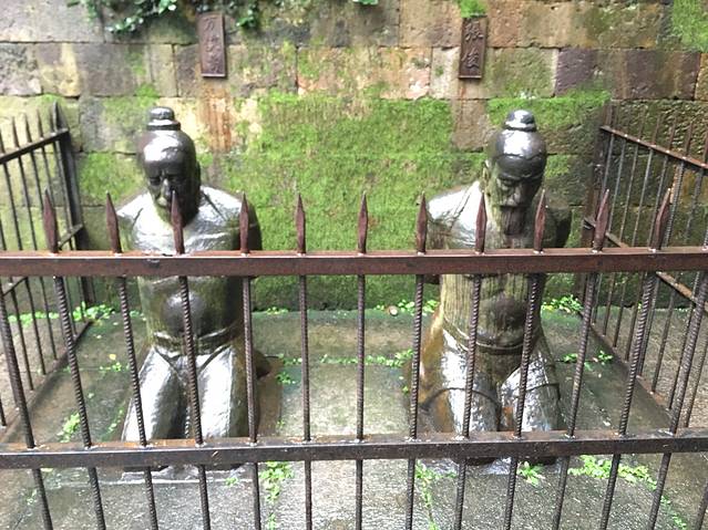 秦桧和他老婆。我记得在哪里看过说以前游客会向他们吐口水,以前妈妈去的时候还没有围栏。