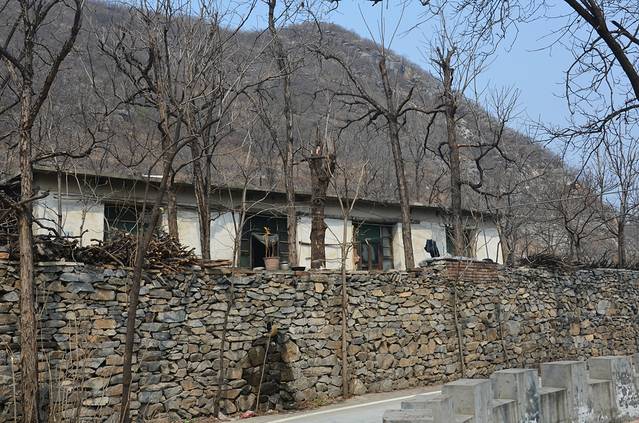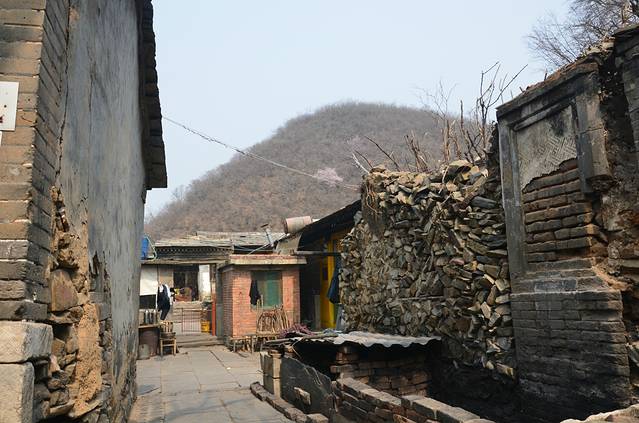 京西门头沟地区有很多古村落,像大名鼎鼎的爨底下村、灵水村、桑榆村等等。在京西南80千米的房山区南窖乡也有一个古村落——水峪村。以下引号内部分摘自百度百科。 ”水峪村为深山区村落,全村沿一条西北东南向的沟岩分布,地势为西南高东北低,平均海拔500——800米。村南建10万立方米水库一座,四季有水;水井三眼,水源充沛;自来水入街,供人畜饮用。环山建设引水管道4500米,引水库水浇灌幼树。村中自然生态保持良好。而尤为宝贵的是该村尚有600间、100余套明清时代的四合院民居坐落在该村东缓坡之上,目前保留得都比较完整。一条S型的青石砌成的古道贯穿全村,村落成圆形,面南朝北,依山而建,形成独具特色的建筑风格,其最具代表性建筑有杨家大院、瓮门、娘娘庙等。