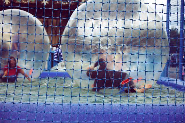 这一对情侣想要靠在一起还真是不容易