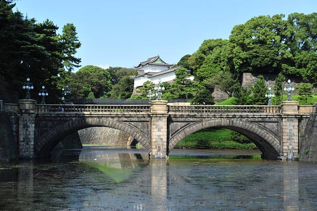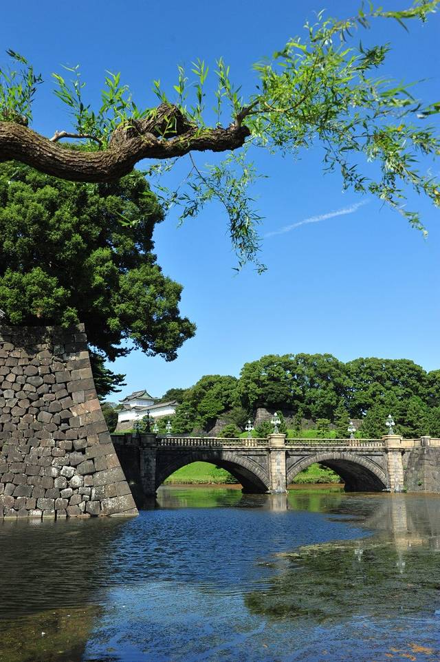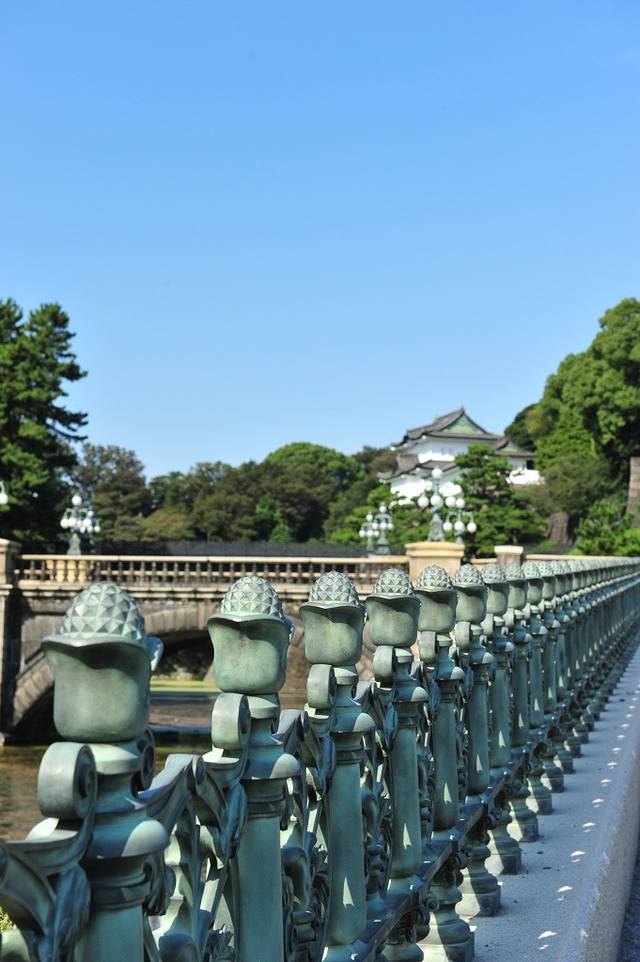 来到二重桥前,遥望皇居内部