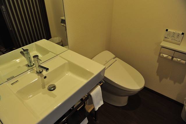 大床宽1.8米,对于三人绰绰有余。房间内采用很沉稳的色调,配以日式图案墙纸,一种禅意油然而生。