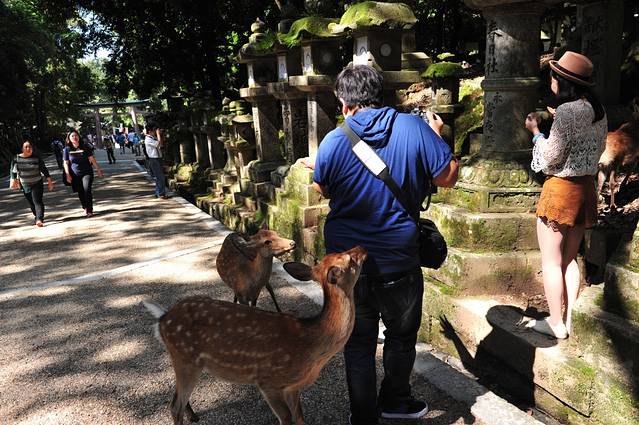 在去东大寺的路上,鹿群众多,几乎占据了路面