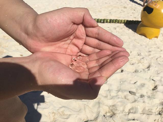 不怕晒的申申,全身都涂防晒了